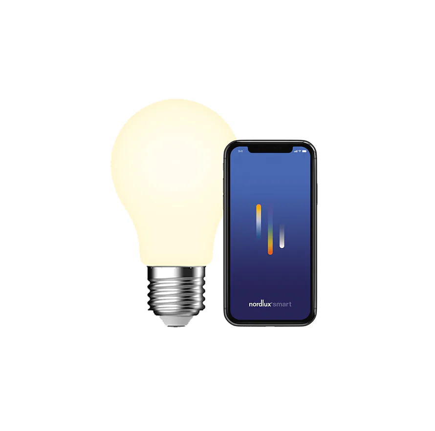 Chytrá žárovka od Nordluxu je vaším pomocníkem k dosažení té správné atmosféry. Intenzitu světla můžete měnit v rozmezí 20-560 lm. Umožňuje proměnu barvy světla z jasně bílého studeného tónu do příjemně teple naladěných odstínů – přesněji od 2200 K až do 6500 K. Stmívání žárovky se snadno ovládá pomocí Nordlux Smart Light bluetooth aplikace, kterou můžete bezplatně stáhnout na Apple Store/Google Play. Kromě toho lze inteligentní žárovku spojit s Nordlux Smart Light Bridge, který rozšiřuje funkce o hlasové ovládání (Google Assistant/Amazon Alexa) nebo třeba plánované vypínání/zapínání chytrých žárovek ve vaší domácnosti.