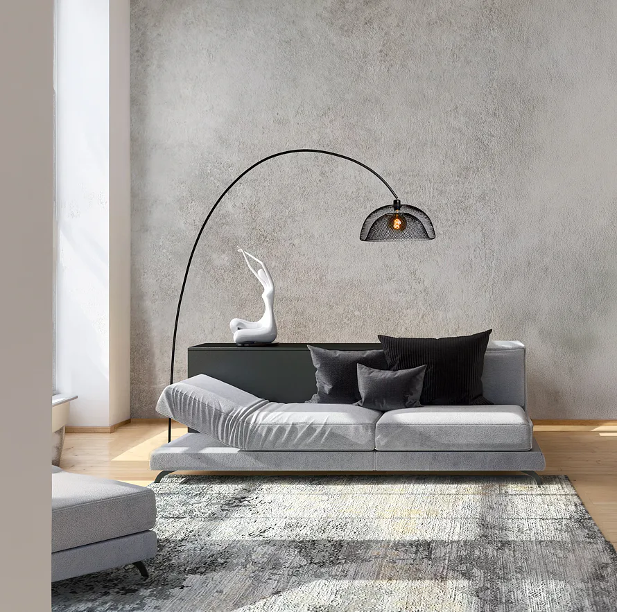 Stojací lampa Mesh od Lucide spojuje jemnou noblesu s drsnou elegancí a moderním stylem.