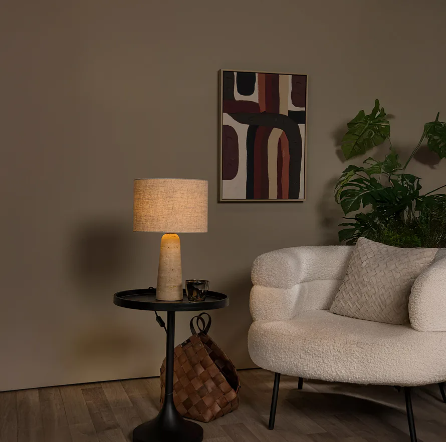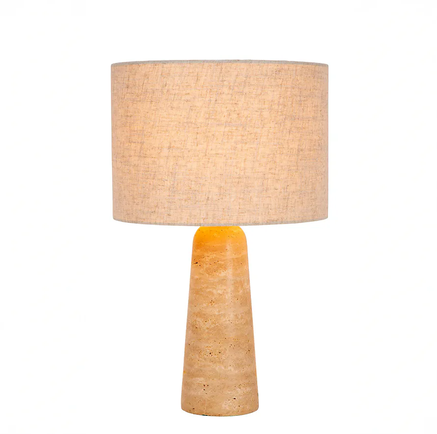 Potřebuje váš interiér stolní lampu s klasickým designem? Nimue je pro vás ideální volbou. Její travertinová základna a tradiční lněné stínidlo vyzařují nadčasovou eleganci. Skvěle vynikne na nočních stolcích, na konzoli v chodbě nebo vedle vaší pohovky. S úsporným LED osvětlením, které snadno ovládáte spínačem na kabelu, se budete divit, jak jste se bez této elegantní lampy kdy obešli.