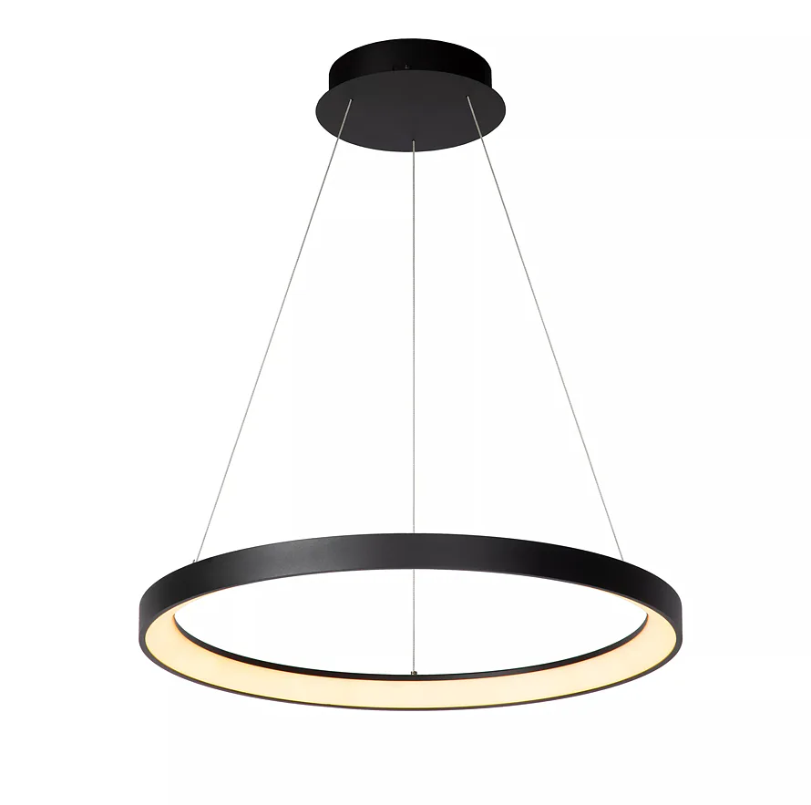 Jeho otevřený kruhový lustr visí z malé kulaté základny na stropě a je zavěšený na třech jemných lankách. Jako celek působí čistě a relaxačně a jeho teplé světlo vytváří ideální atmosféru u stolu. Snadno ho připojíte i k externímu stmívači a můžete si tak sami regulovat intenzitu svícení.
