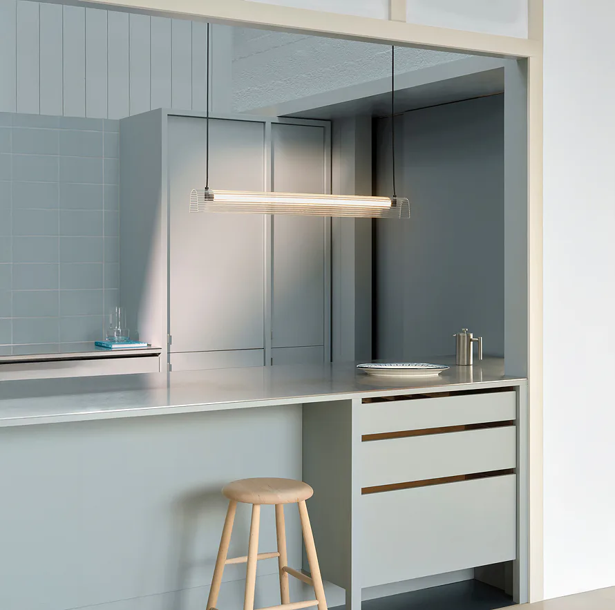 Tenké provedení je ideální nad jídelním stolem nebo kuchyňským ostrůvkem, kde poskytuje příjemné, stmívatelné světlo, aniž by zabíralo mnoho vizuálního prostoru.