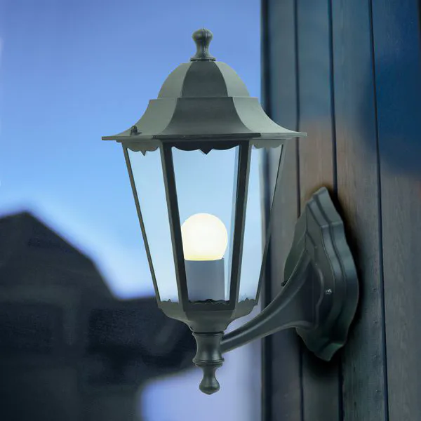 Cardiff je elegantní nástěnné svítidlo pro venkovní použití, vhodné k osvětlení vchodu domu nebo jeho okolí. V retro designu s hlavou lampy směřující nahoru.