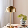 Dejte vašemu domovu punc exkluzivity! Mosazná stolní lampa Cera působí výjimečně a přesto dodá interiéru útulnost a teplo domova. Velké klenuté stínítko pěkně kontrastuje s lehkou konstrukcí a vytváří široký kužel světla, což oceníte v obývacím pokoji nebo čtecím koutě, ale dodá teplo každému místu u vás doma.