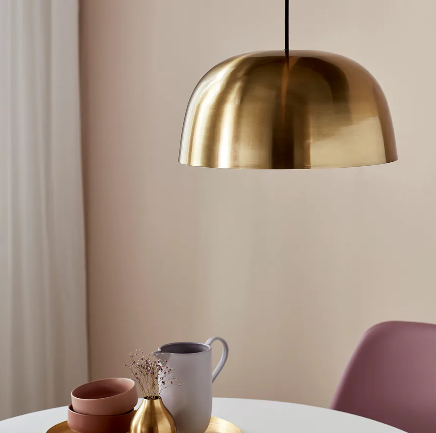 Dejte vašemu domovu punc exkluzivity! Mosazná lampa Cera působí výjimečně a přesto dodá interiéru útulnost a teplo domova. Velké klenuté stínítko vytváří opravdu široký kužel světla, což oceníte nad jídelním či konferenčním stolem.