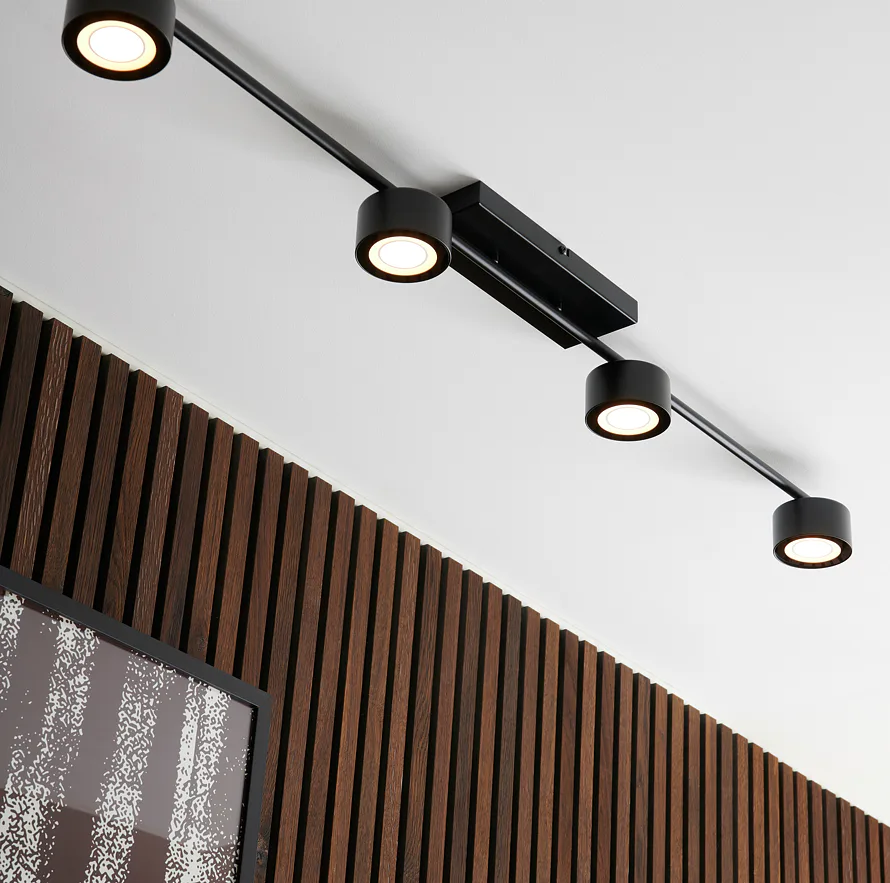 Útlý severský design se v sérii Clyde snoubí s inovativní technologií a výsledkem je prostorově nenáročné stropní svítidlo, které však dokáže dodat dostatek světla do širokého prostoru. Intenzitu světla je možné přizpůsobit díky třístupňovému "moodmakeru", kdy si počtem stisknutí vypínače navolíte, jestli bude stínítko svítit celé, nebo jen jeho části. Svítidlo Clyde 4 se čtyřmi stínítky skvěle osvětlí vaši jídelnu nebo obývací pokoj.