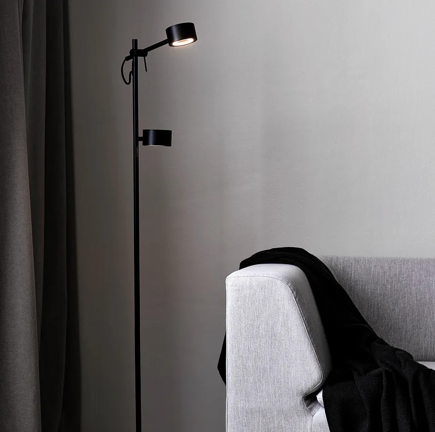 Útlý severský design se v sérii Clyde snoubí s inovativní technologií a výsledkem je prostorově nenáročná stojací lampa, která však dokáže díky dvěma světlům pořádně posvítit. Horní nastavitelné rameno pak může mířit přímo na právě rozečtenou knížku nebo naopak navodit útulnou atmosféru v obývacím pokoji. Intenzitu světla je možné přizpůsobit díky třístupňovému "moodmakeru", kdy si počtem stisknutí vypínače navolíte, jestli bude stínítko svítit celé, nebo jen jeho části.
