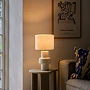 Elegantní, klasická, ale s nečekaným twistem! Stolní lampa Nordlux Dugan spojuje tradiční látkové stínidlo s moderní lesklou keramickou základnou, která vás zaujme svým hravým tvarem.