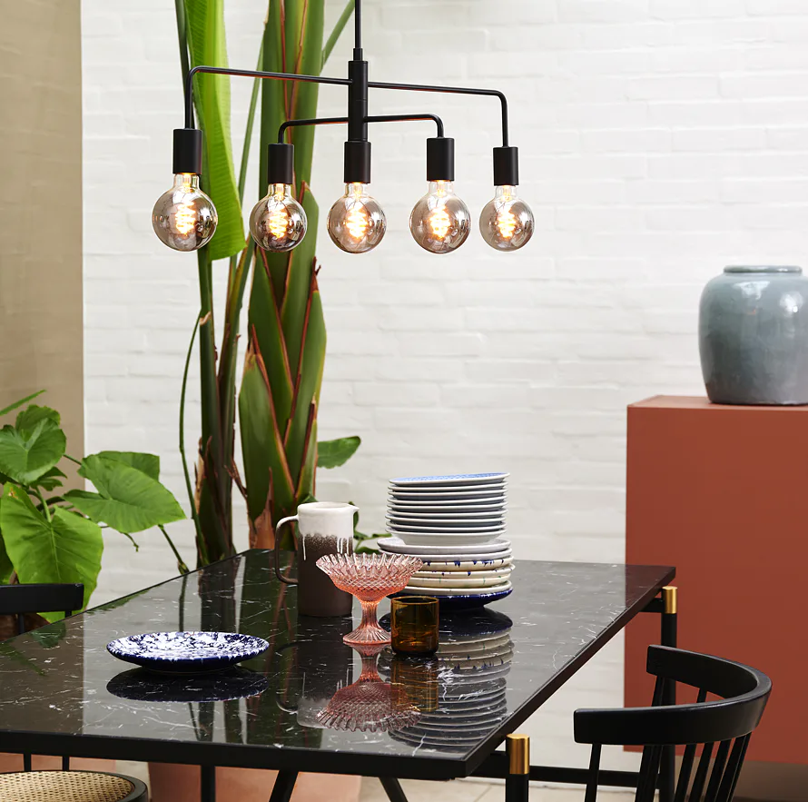 Inovativní moderní a hravý design se snoubí ve světle Nordlux Gloom. Osvětlení sestává z pěti stínidel na dvou ramenech, která můžete libovolně nastavovat a otáčet dle Vaší potřeby. Industriální vzhled se snoubí s měkkými linkami a tvoří tím nečekanou podívanou. Závěsné světlo si můžete zakoupit buď v černé barvě nebo v mosazné variantě. Dokupte některou z našich dekorativních žárovek pro intenzivnější efekt.