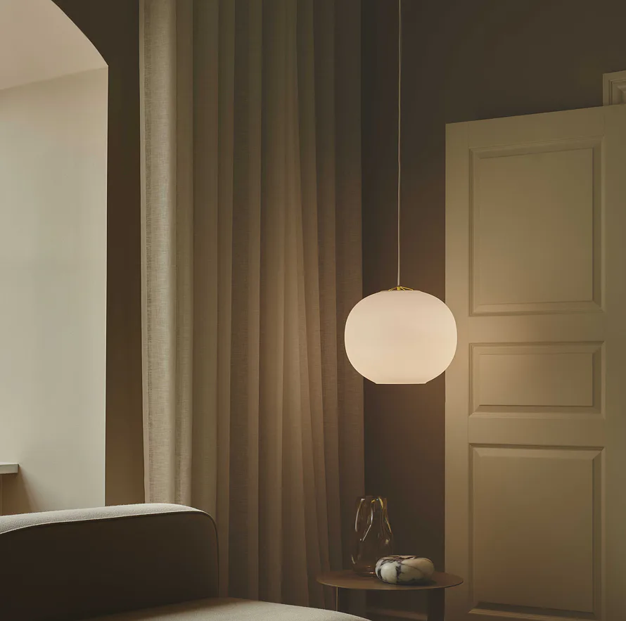 Pokud hledáte nadčasový lustr, který neomrzí, jistě sáhněte po závěsném svítidle Navone od Nordluxu. Celkový tvar stínítka je kulatý, přesto organický a subtilní. Zakřivené dno dodává světlu nový zajímavý rozměr a proměňuje tak stínítko na více než jen kouli. Mosazné detaily v kombinaci s jemnou bílou tvoří moderní propojení a podtrhují lehkost světla.