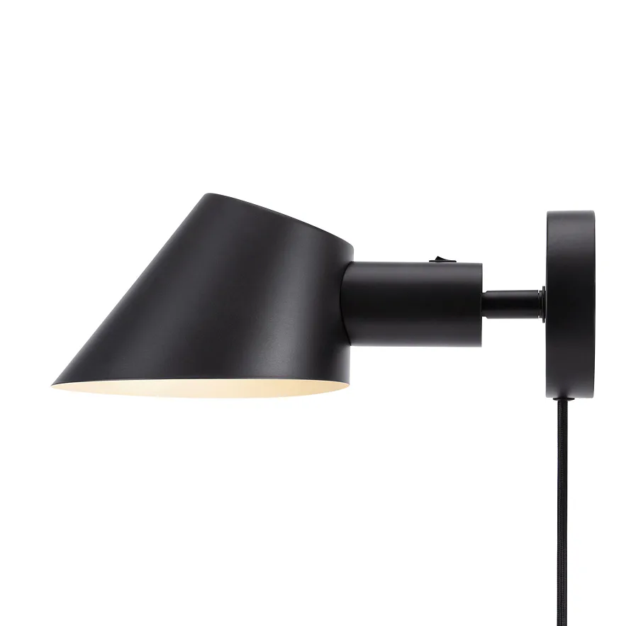 Nástěnná lampa Stay Short, která si posvítí přesně na to, co potřebujete! Nastavitelnou hlavu je možné otáčet, přičemž stínítko svítí nahoru i dolů a propouští velké množství světla díky zešikmenému tavru. Perfektně se hodí jako noční lampička k posteli.