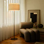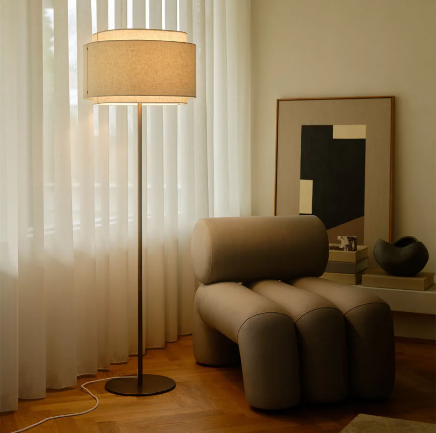 Když se minimalismus potká s útulnem. Stojací lampa Nordlux Takai od Studio Mavro // Lefèvre vás okouzlí jemným lněným stínidlem, které mění svůj vzhled podle úhlu pohledu.