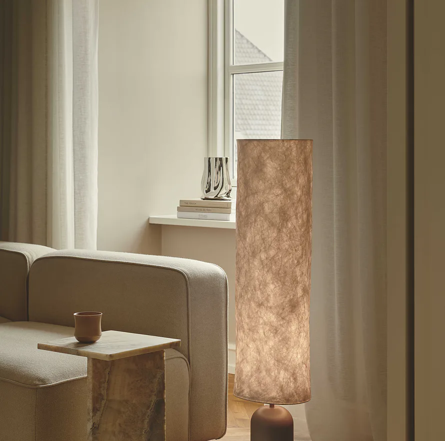 Talli je stojací lampa navržená designérským duem Anker Studio v inovativním vzhledu. Lampa je vyrobena z materiálu tyvek, který je odolný a příjemně rozptyluje světlo do okolí. Vysoké stínítko je doplněné kovovou zaoblenou základnou, společně perfektně osvětlí tmavý kout obývacího pokoje nebo ložnice.