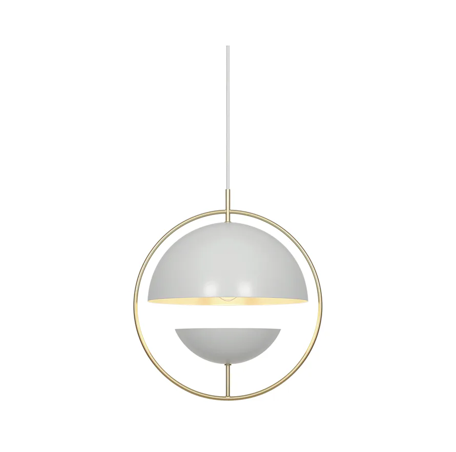 Dvě kulatá stínidla, umístěná proti sobě, doplňuje elegantní mosazný kruh, který dodává svítidlu jedinečný šmrnc. Tavia poskytuje příjemné rozptýlené světlo, které vytváří útulnou atmosféru, ať už ji zavěsíte nad jídelní stůl, do ložnice nebo obývacího pokoje.