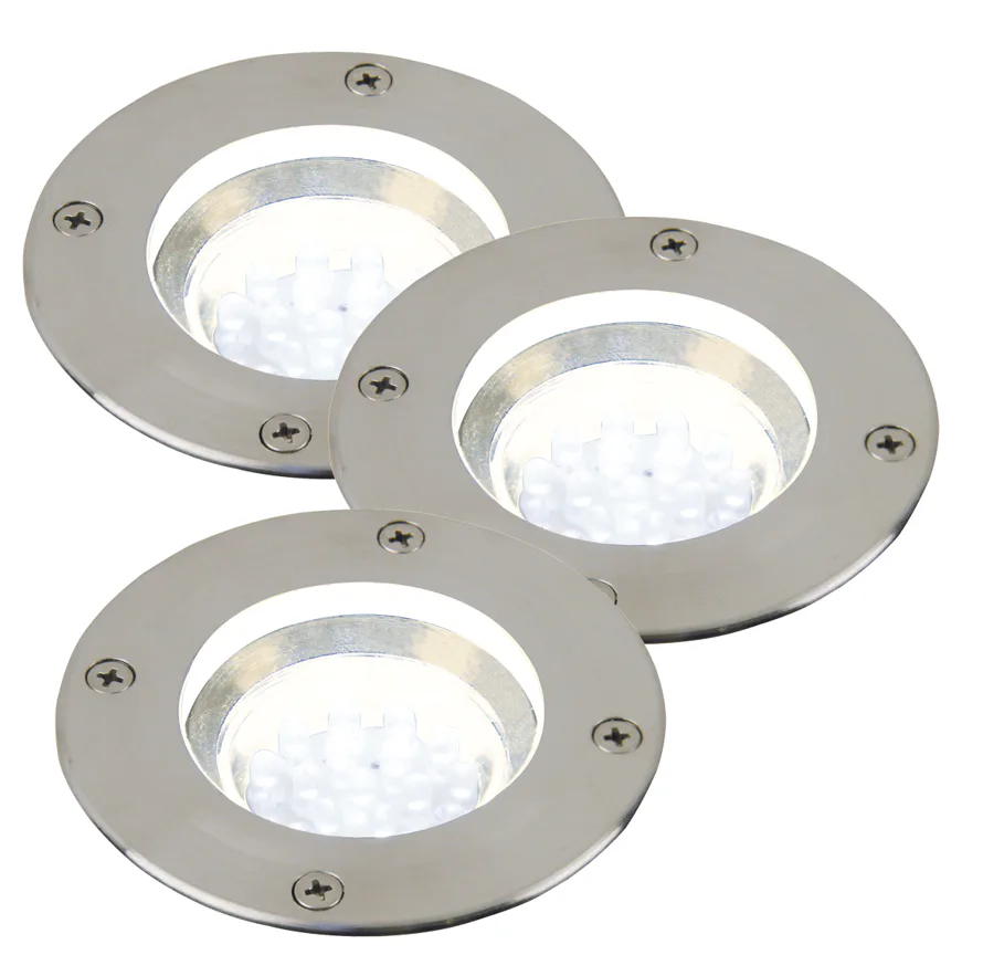 Originální sada 3 vestavěných zemních svítidlel Tilos od Nordluxu vyrobených z robustní nerezové oceli a skla. Neutrálně zapadne do exteriéru, vydává příjmené světlo a díky paralelnímu zapojení se bude skvěle hodit pro osvětlení příjezdové cesty.