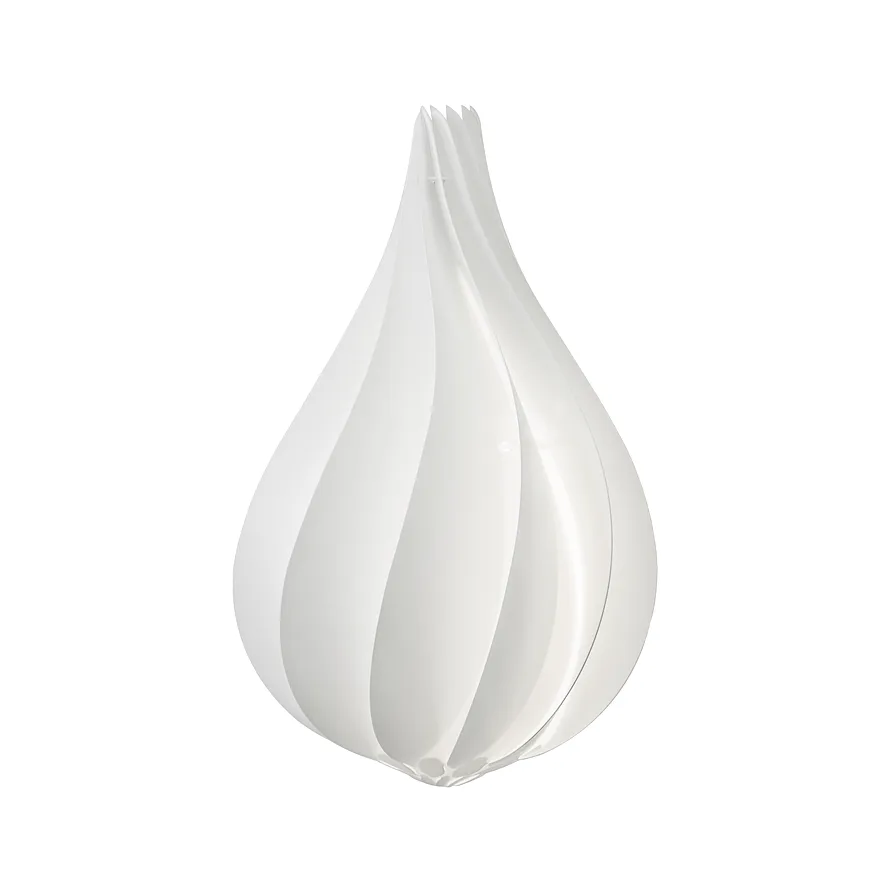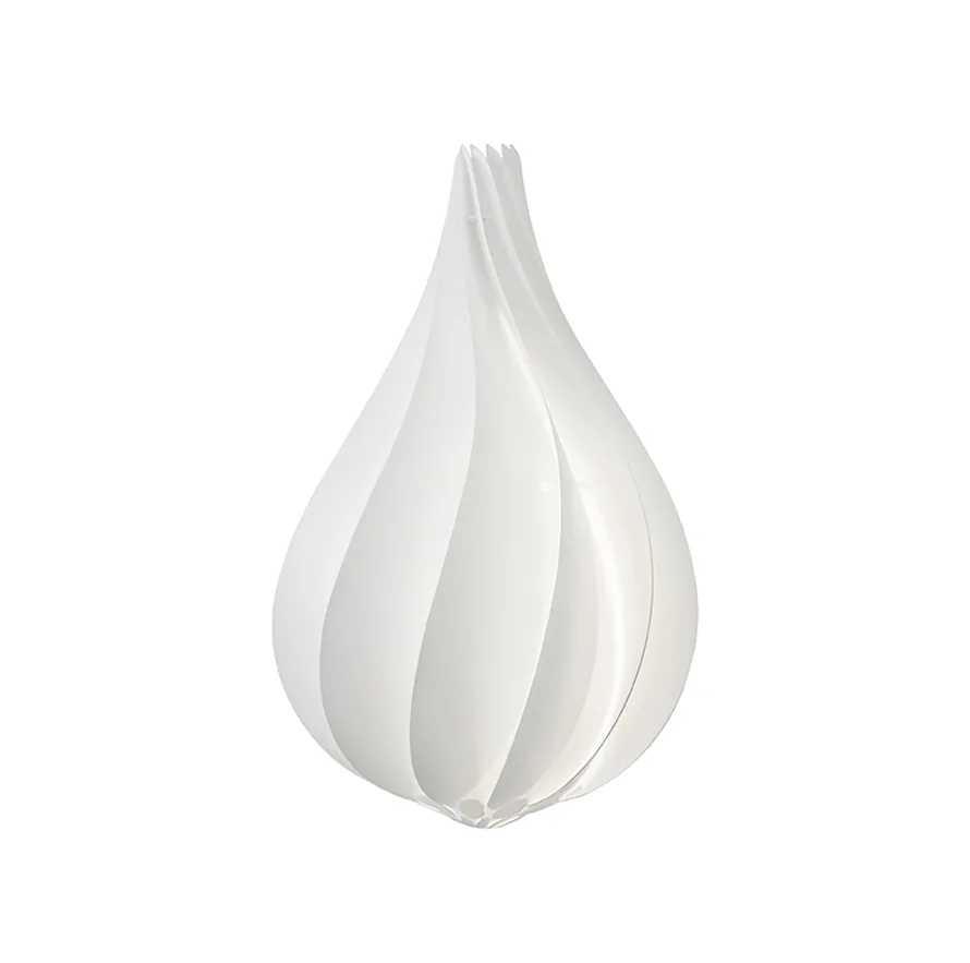 Stínítko UMAGE Alva svým tvarem připomíná dosud nerozvité poupě bílého květu, nebo šlehačkovou pusinku - záleží na Vaší fantazii. Lampa svým tvarem ozvláštní každný prostor od jídelny, kavárny či relaxační zóny až po obývací pokoj a kuchyňský kout. Kompatibilní se závěsy řady UMAGE v bílé či černé barvě. Dostupná ve dvou velikostech.