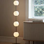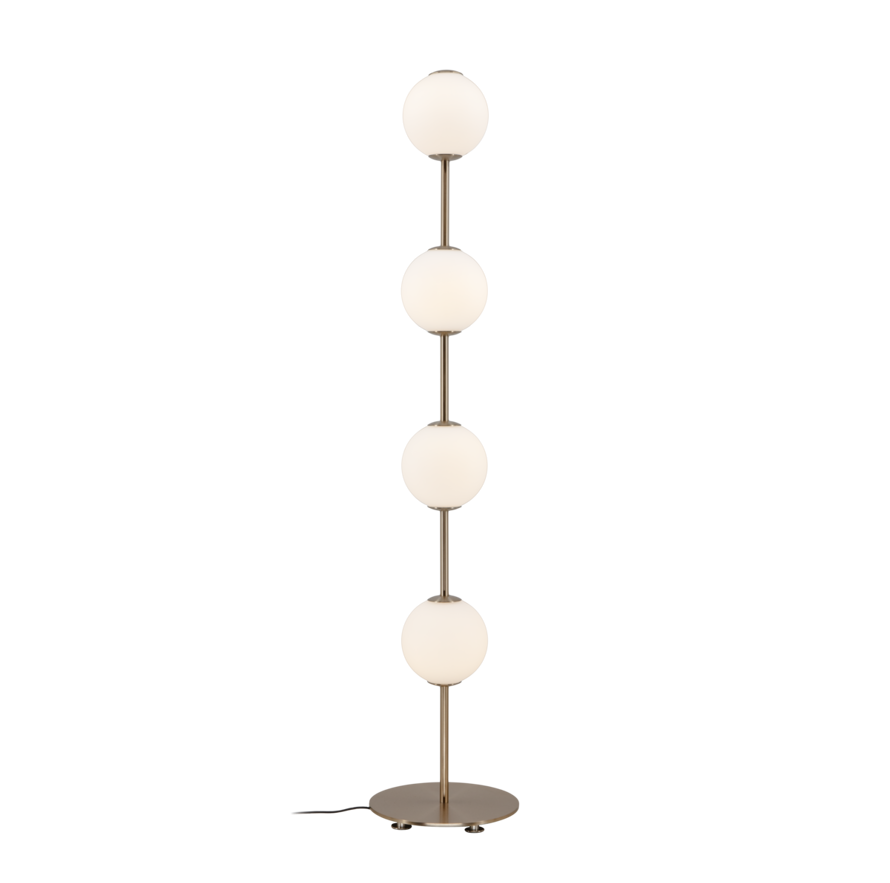 Díky mosazným prvkům a ručně foukaným koulím z opálového skla vyzařuje lampa Audrey okouzlující teplo a eleganci, připomínající zářivé perly. Jemné skleněné koule rozptylují světlo s lehkostí a vytvářejí uklidňující atmosféru.