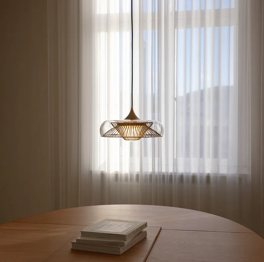 Stínidlo Chordis přináší do interiérů nadčasovou směs skla a mosazi a vytváří vzdušný, téměř neviditelný pocit, vyvážený teplou září leštěných mosazných akcentů. Jeho jemný design odráží pečlivou pozornost k detailu a kombinuje nadčasovou krásu zakřiveného skla s lyrickou elegancí klavírních strun.